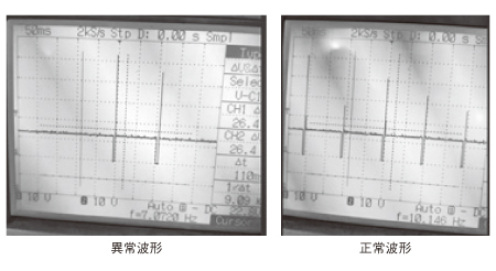 写真《正常波形》は2番と4番シリンダで、等間隔で波形が出ている。